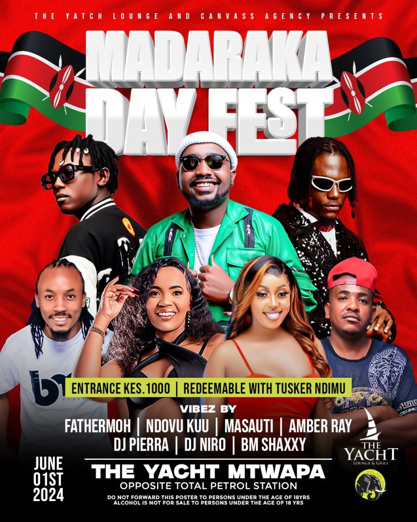 The festivities will kick off on Saturday, 1 st June, 2024 on Madaraka Day at The Yacht Lounge in Mtwapa from 2 pm until late.