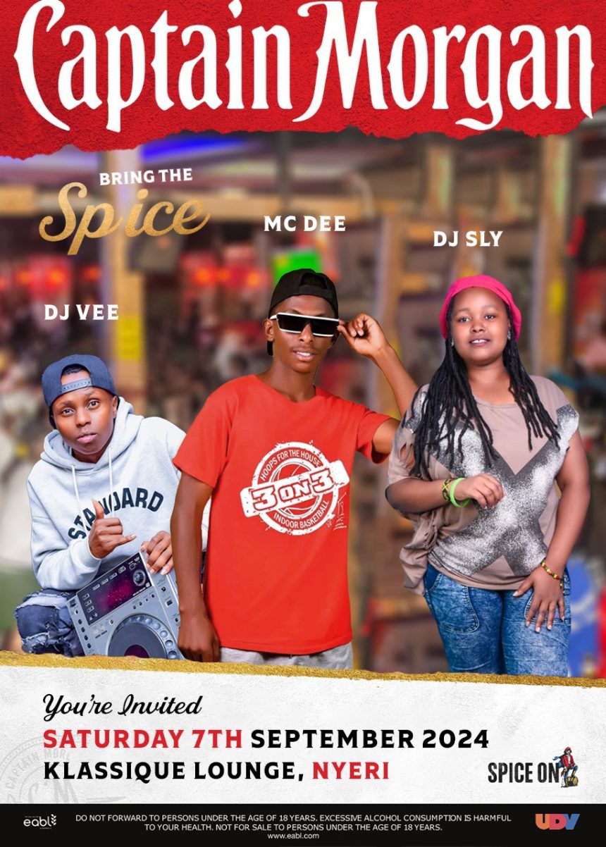 Kenya Breweries  leading rum brand, Captain Morgan will host a Spice Takeover on Saturday 7th September at Klassique Lounge in Nyeri. The event will offer consumers the ultimate experience to  Spice with their crew and enjoy spiced up music by DJ Vee, DJ Sly and MC Dee.