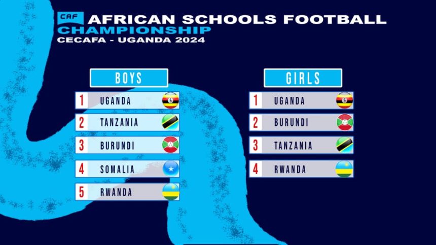Uganda, Tanzania, Somali, Burundi and Rwanda in the boys category as well as Uganda, Tanzania, Burundi and Rwanda in the girls category.