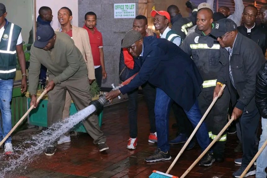 Nairobi Governor Johnson Sakaja unveiled the night clean up exercises and has been at the fore front at leading the exercises. The county as well moved to remove hanging sign posts from walk ways and shop corridors in the central business district further making it easier for people to walk around town following the relocation of hawkers from the streets to back lanes.