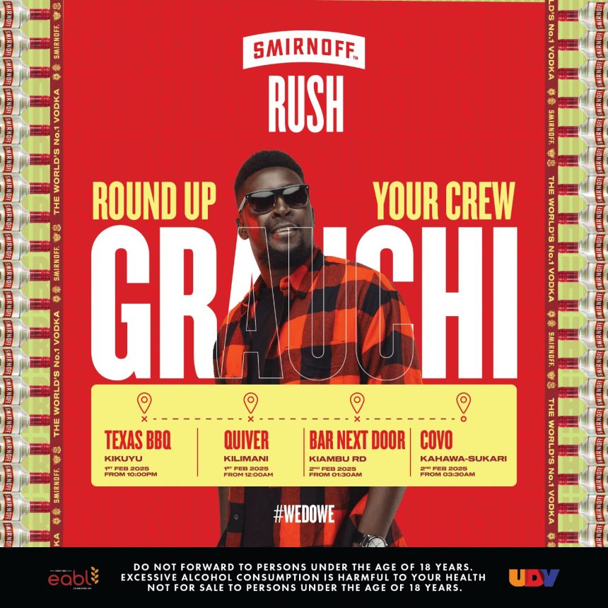 Nairobi, Kenya 31st January 2025 – Smirnoff is set to ignite Kenya’s nightlife with its latestthrilling activation, Rush. This one-of-a-kind event will see the renowned DJ Grauchi  embark on an epic journey, performing at four different clubs in one night, creating an unforgettable experience for partygoers across the city.