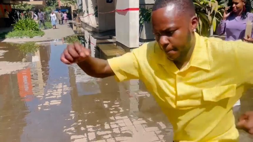 Videos seen by Kenya Online News showed the raw sewage flowing outside the offices with pedestrians walking along the pavements struggling to navigate their way by jumping over the dirty water, and changing their routes.
