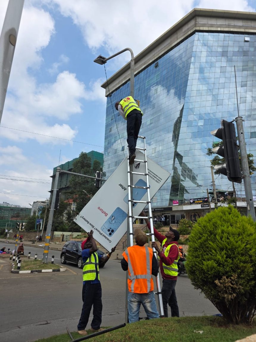 The Nairobi City County government has today, Saturday July 12, 2025 moved with speed to unmount all illegal advertising sign posts in Nairobi following the Nairobi County Cabinet resolution against illegal advertisements.